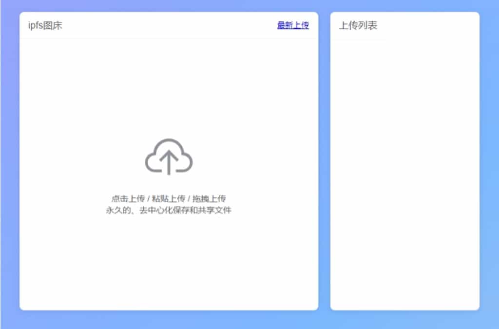 1.進入「IPFS圖床」服務,點擊雲端上傳圖示按鈕即可選擇上傳圖片。