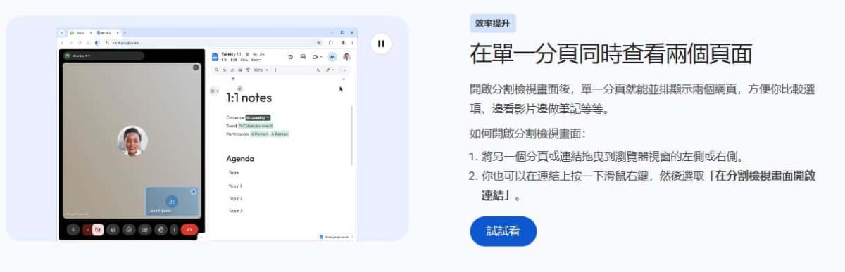 你是不是也有這樣的經驗?一邊看著產品規格表,一邊開著購物網站比價;或是在 Google Docs 寫報告的同時,需要不停切換到參考資料的分頁?如果你總是在多個視窗之間來回切換到頭昏眼花,那麼 Chrome 最新推出的分割檢視功能,可能就是你一直在等待的救星。