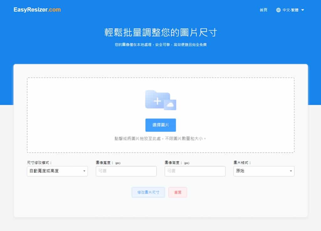 1.EasyResizer 網站支援多語言介面,可以選擇慣用語言。