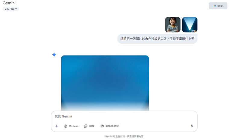 Gemini 通常需要幾分鐘的時間來處理,完成後就會直接顯示生成的手電筒桌布。如果對結果不滿意,可以要求調整: