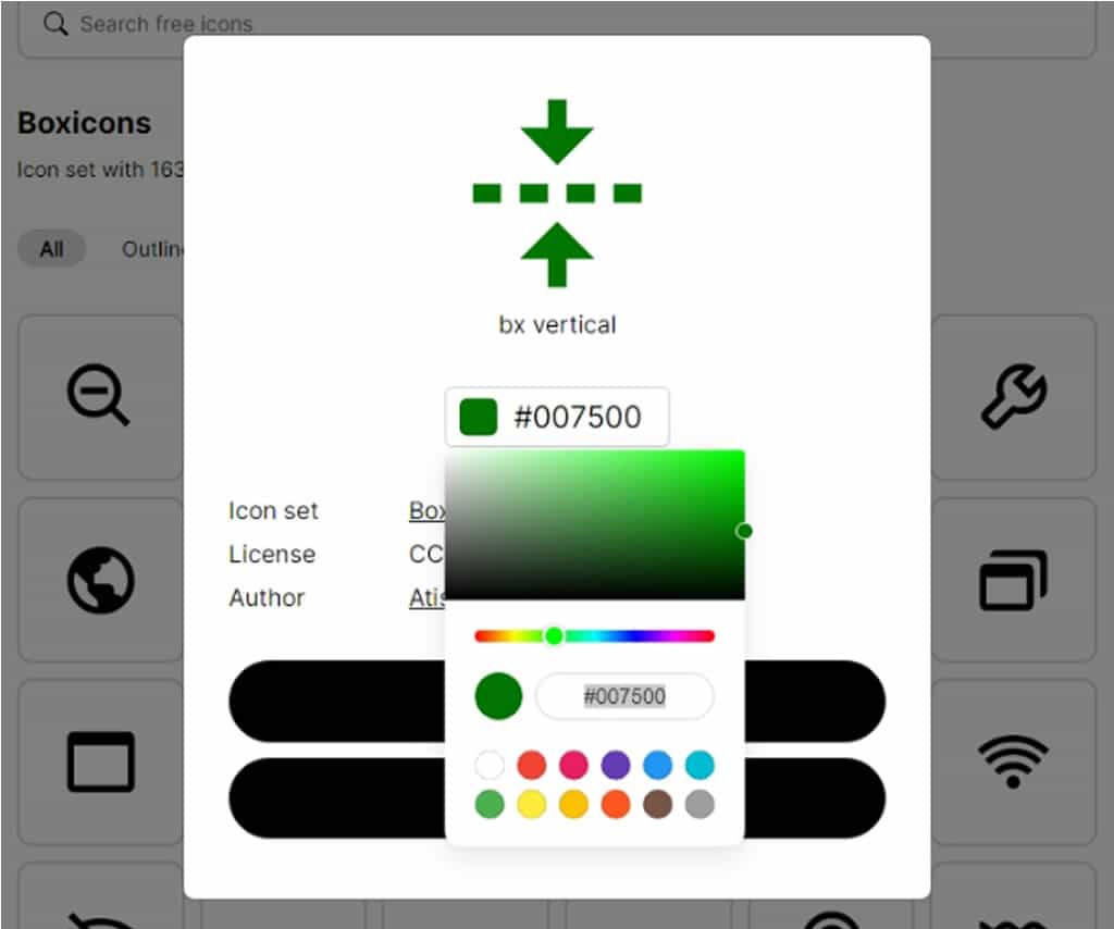 4.另外,圖示還可以在線上變更顏色,輸入或使用色盤選擇顏色碼後,就可以產生預覽圖示並下載。