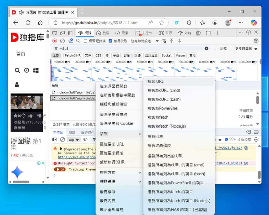2.開啟影音網站,判斷與取得 M3U8 檔案網址。