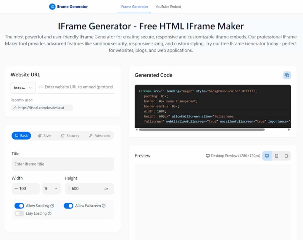 除了基本功能外,IFrame Generator 還支援即時預覽嵌入效果,並提供 responsive 響應式 iframe 選項,讓嵌入內容能自動適應各種裝置螢幕,無論是手機、平板還是桌機都能完美呈現。不論你是經營 WordPress 網站、Blogger 部落格,還是架設個人教學平台,這款工具都能派上用場。唯一要注意的是,被嵌入的網頁必須允許 iframe 顯示,若有設定 X-Frame-Options 限制,則無法成功載入內容。