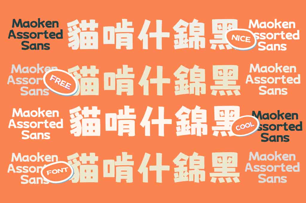 貓啃什錦黑(Maoken Assorted Sans-TC)是一個免費開放原始碼的繁體中文字體,主要改作自日本作者波間のかけひき創作的「にしき的フォント」(Nishiki-teki)字型。此字體根據《常用國字標準字體表》與 jf 7000 當務字集等多種來源,增補了繁體中文常用字,並針對部分漢字筆劃進行最佳化與修改,保留了日文字體的原有風格,以更符合中文使用者的需求。字體採用麥克筆手寫風格,筆劃活潑生動,呈現出可愛且有趣的視覺效果,非常適合用於海報或宣傳品的設計中,能有效吸引視覺焦點。此外,貓啃什錦黑採用 SIL Open Font License 1.1 授權,允許免費下載並自由使用,無須告知或標示原作者,亦可用於商業用途。