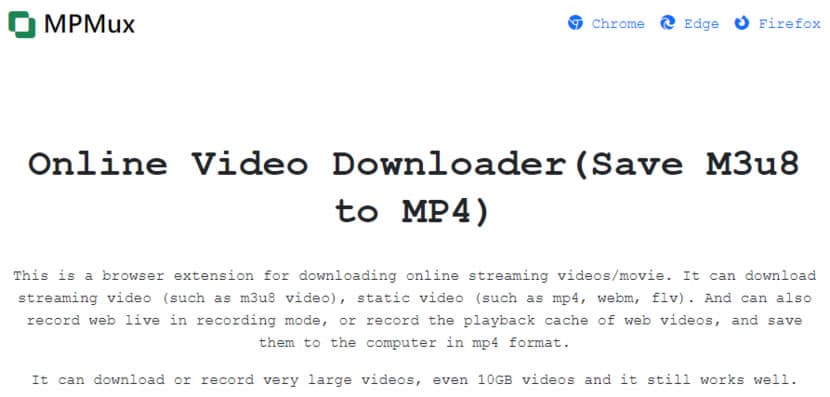 想要下載使用 HLS 播放的影片,比較簡單的方法就是使用像是 MPMux 這類工具,MPMux 是個瀏覽器擴充功能,除了可在 Chrome 瀏覽器使用外,還支援 Edge 和 Firefox,其主要功能就是可以自動偵測在網頁上播放的串流影音影片並下載為 MP4 格式,如果不是串流影音也可以直接錄影。