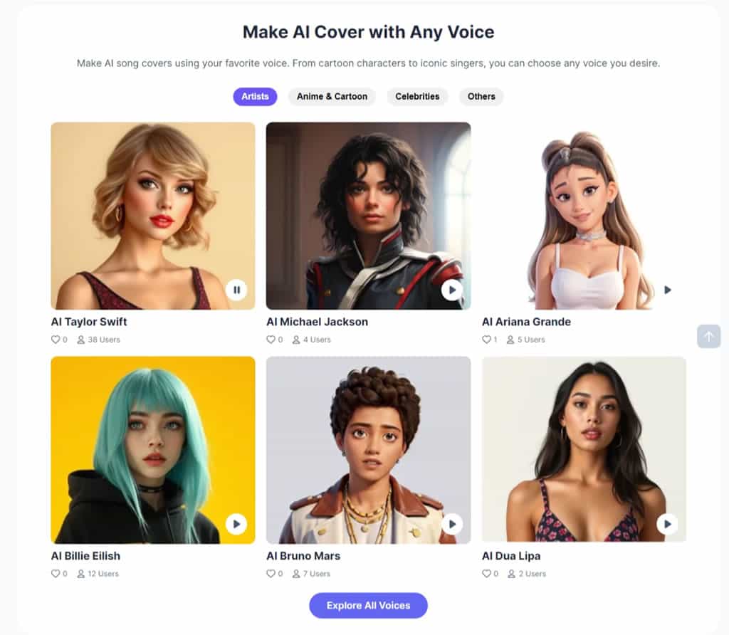 常見的 AI 語音應用通常集中在模仿名人或文字轉語音,但 PopPop AI Song Cover Generator 則是創新專注於歌曲翻唱。這個工具不僅能將各種音樂轉化為不同的 AI 語音風格,還提供多種來源選擇,讓使用者輕鬆生成個性化的翻唱版本。