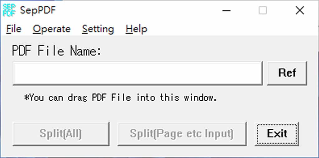 2.開啟後的 SepPDF 應用程式,可以點擊「Ref」來選擇要分割的 PDF 檔案。