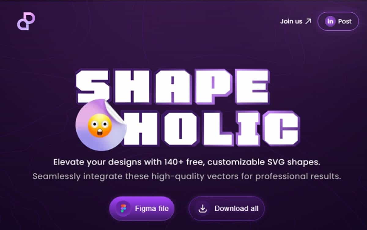 對於使用 Figma 進行設計的用戶來說,Shape-O-Holic 提供了一個超級便利的功能:下載完整的 Figma 檔案。這意味著你可以一次取得所有 140+ 種圖形,直接匯入到你的 Figma 專案中使用,完全不需要逐一下載。