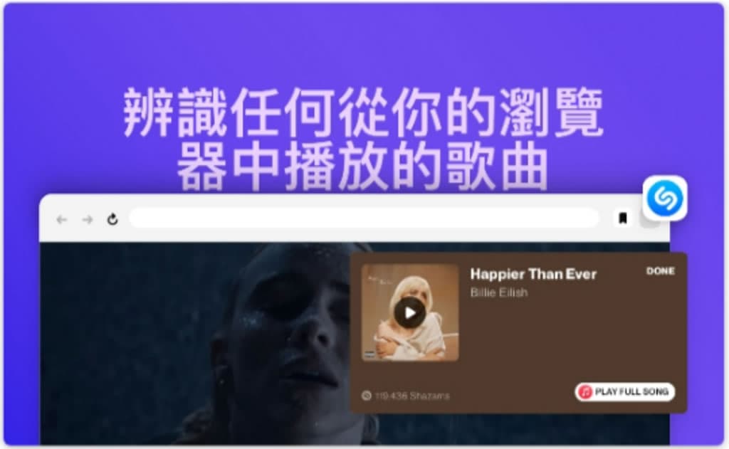 如何使用 Shazam 擴充功能辨識在瀏覽器中所播放的歌曲?
