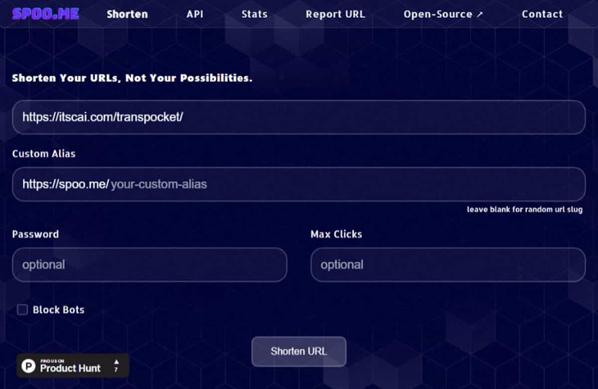 在安全性方面,Spoo.me 提供了密碼保護功能,你可以為特定的短網址設定密碼,確保只有知道密碼的使用者才能存取。更進階的功能還包括設定最大點擊次數限制,當達到指定的點擊數後,短網址就會自動失效,這對於限時活動或特殊用途的連結來說相當有用。另外,還有防機器人爬取的保護機制,可以有效避免惡意程式的自動存取。