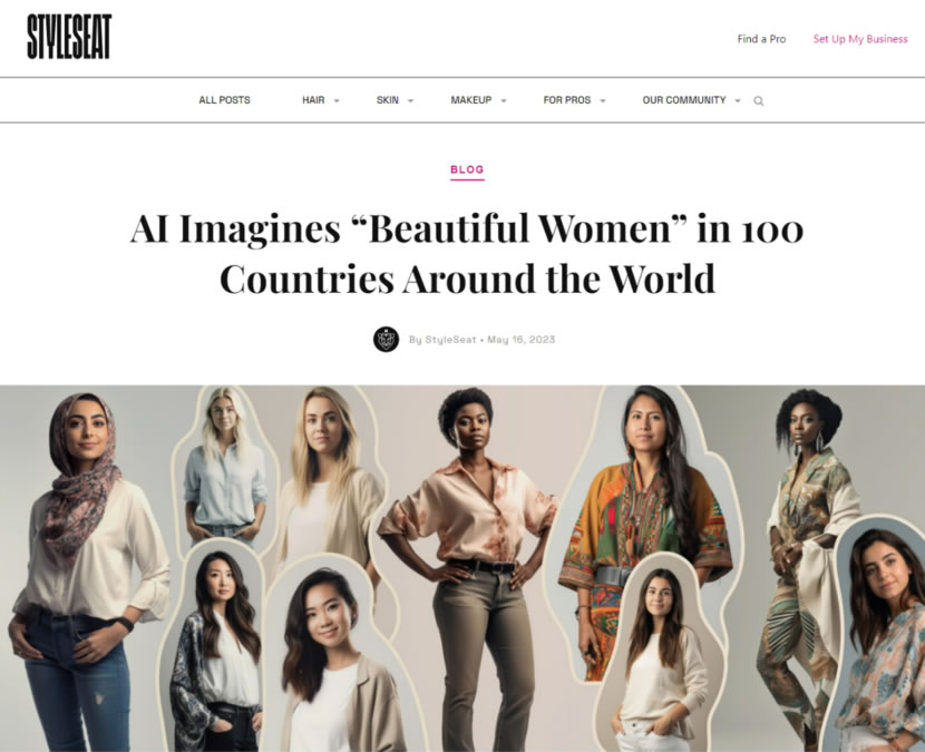 「美」是一個主觀的概念,受教育、文化、社會等多種因素所影響,因此每個人對「美」的審美觀亦會有不同,那麼 AI 呢?美髮網站「StyleSeat」的專家使用 AI 以文產圖程式 Midjourney,生成了全球各國 100 位女性圖,其中也包含台灣。
