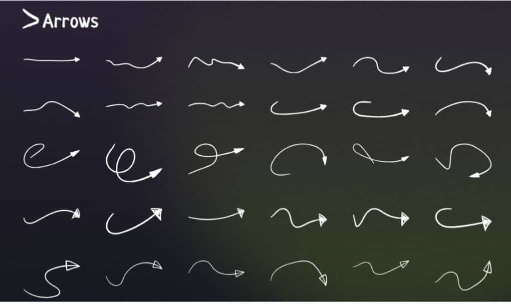 1.Svg DooDle Drawings 網站,將其圖示區分為 Lines、Abstract、Circles、Arrows 和 Brush 五個分類。