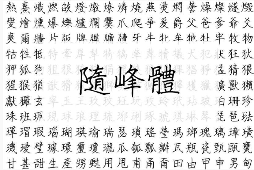 「隨峰體」是一套香港人阿坤創作的免費中文手寫字型,參照網站說明,阿坤是熱愛寫字的香港人,隨峰體是以啫喱筆(Gel pen,中性筆)寫成的字型,保留手寫的痕跡和瑕疵,這個字型完全免費, Windows 和 Mac 均可安裝。
