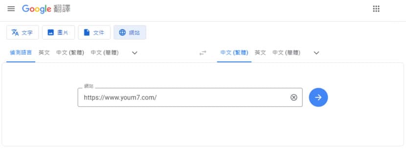 3.既然只能使用語言區分要不要自動翻譯,我們可以先複製要翻譯網址,再開啟「Google 翻譯」網站,貼上網址,選擇「偵測語言」與翻譯後的語言。