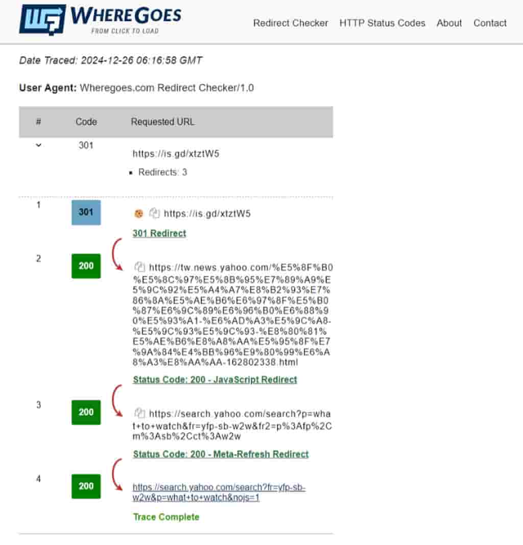 WhereGoes 是一個專門用於顯示網址轉址完整過程的免費線上工具,適用於各種伺服器及其前端類型的轉址技術,包括 PHP、htaccess、NGINX、JavaScript 和 meta-refresh 等。即使是縮網址,使用者也能透過該工具追蹤到最終的源頭網址。對於一般使用者而言,WhereGoes 可以用來檢查網址是否為惡意連結,提供更安全的網路體驗。對於網站經營者來說,這個工具能幫助找出隱藏的重定向程式碼(如 301 或 302),從而避免多重導向對 SEO 排名產生負面影響。
