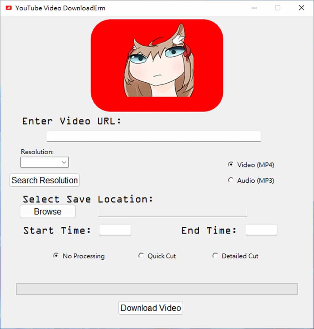 YouTube DownloadErm 的介面設計簡潔明瞭,操作流程與一般線上下載工具相似,但功能更加豐富。該工具提供三種下載模式:No Processing(無處理)適合快速下載完整影片;Quick Cut(快速剪輯)可在下載後進行基本剪輯;Detailed Cut(精細剪輯)則提供更精確的影片片段擷取功能。這種彈性的設計讓使用者可以根據實際需求選擇最合適的下載方式。